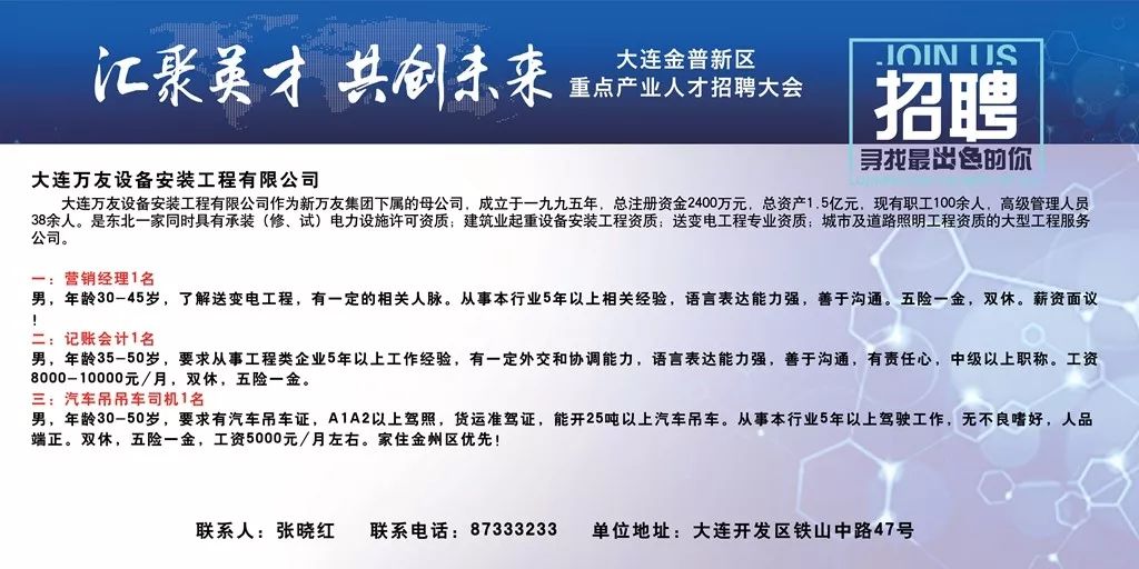 轉(zhuǎn)載請(qǐng)注明來自馬鞍山市深藍(lán)光電有限責(zé)任公司,本文標(biāo)題:《大連后鹽招聘最新資訊》