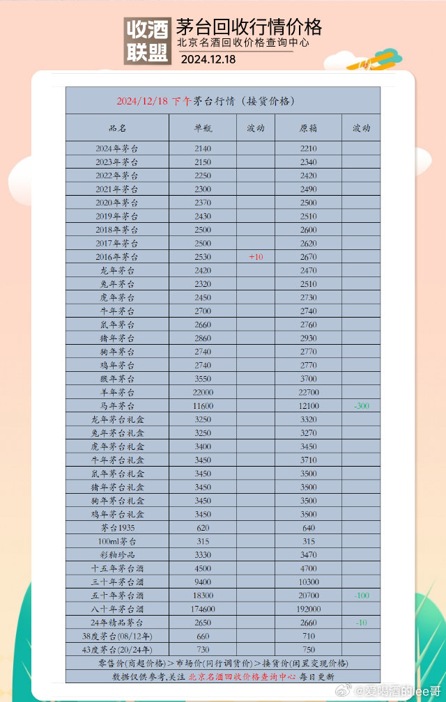 1、關(guān)注市場(chǎng)動(dòng)態(tài):了解茅臺(tái)酒的市場(chǎng)報(bào)價(jià)及變動(dòng)情況,有助于做出更明智的購(gòu)買決策。
