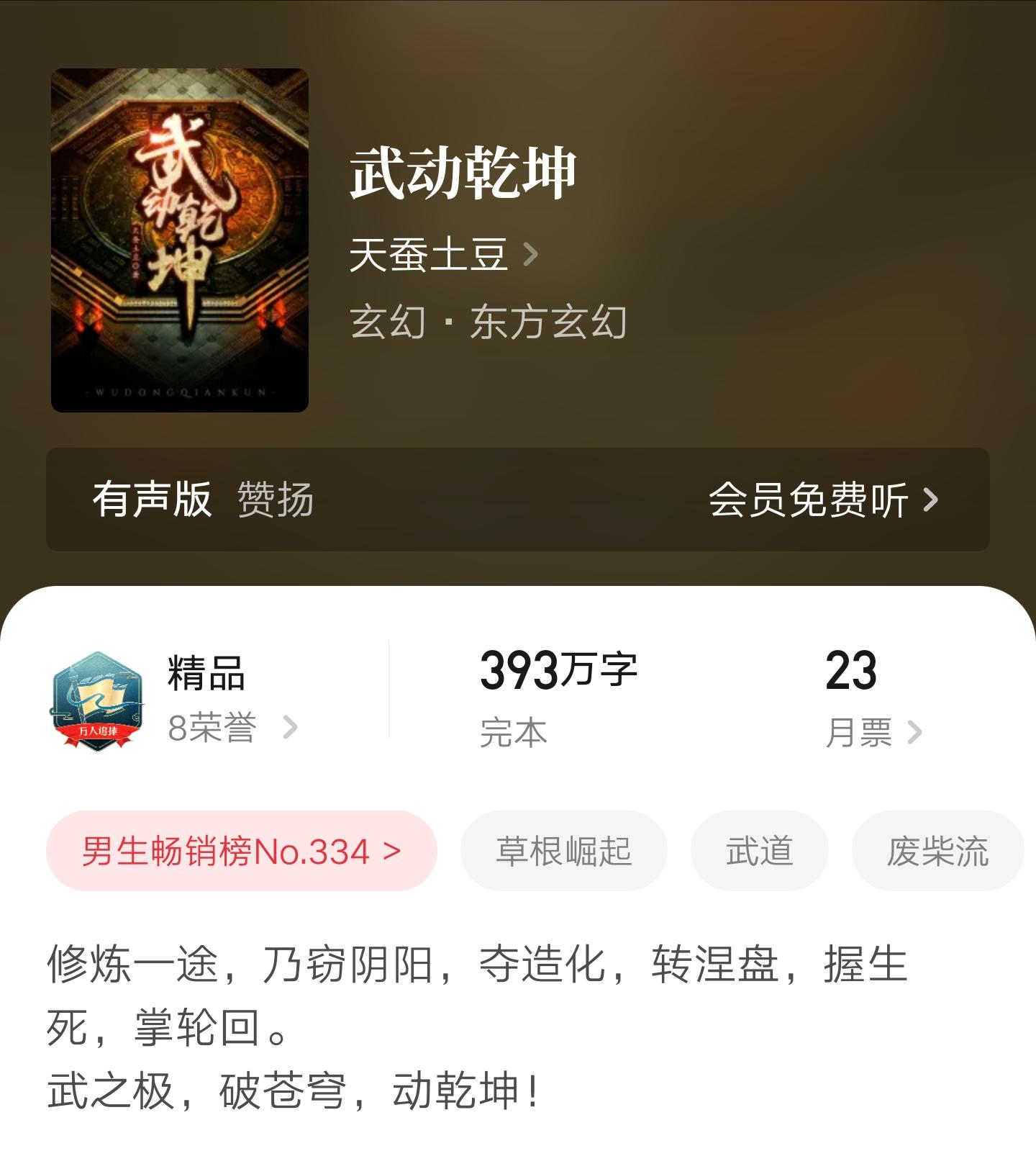 在平臺首頁的搜索框中輸入“武動乾坤”,在搜索結果中選擇正確的書名,進入書籍詳情頁,在詳情頁中,可以看到最新的章節(jié)列表。