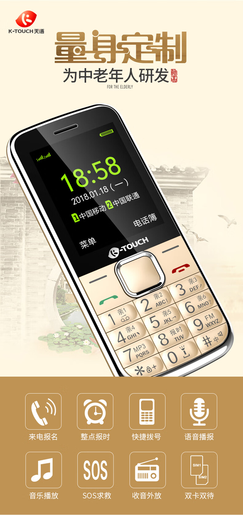 1、大屏幕和簡潔的操作系統(tǒng),方便老年人閱讀和使用。