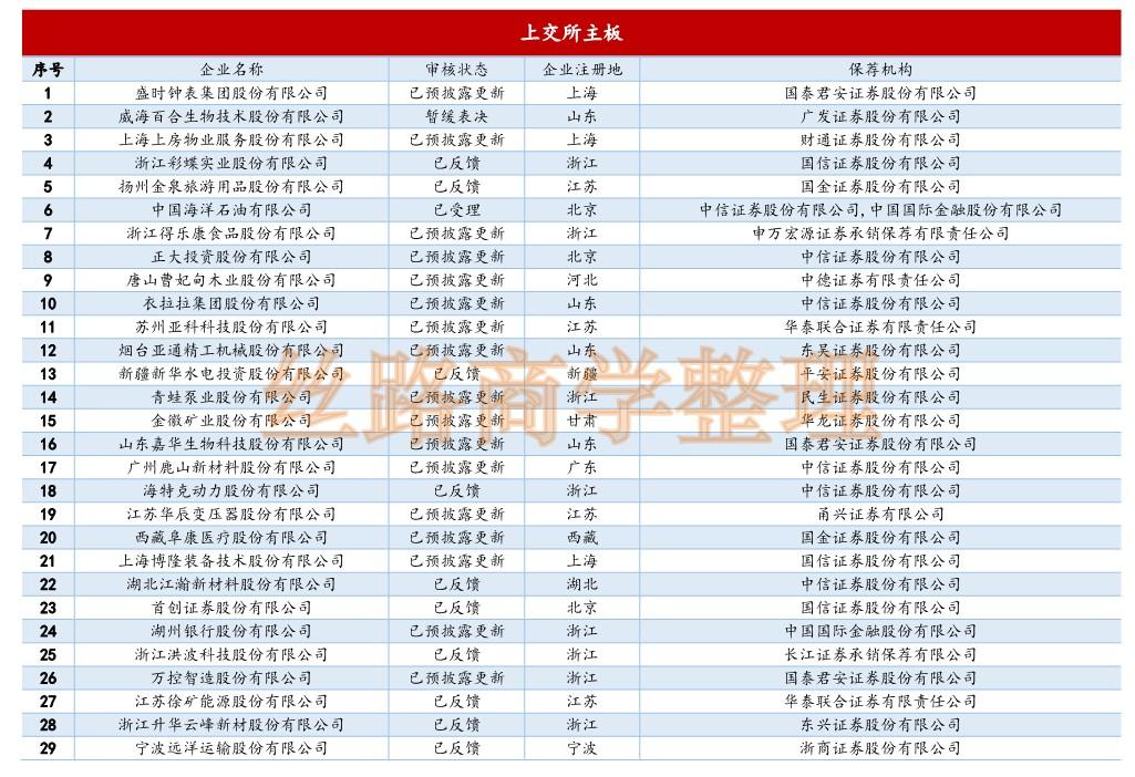 IPO企業(yè)排隊(duì)情況概覽