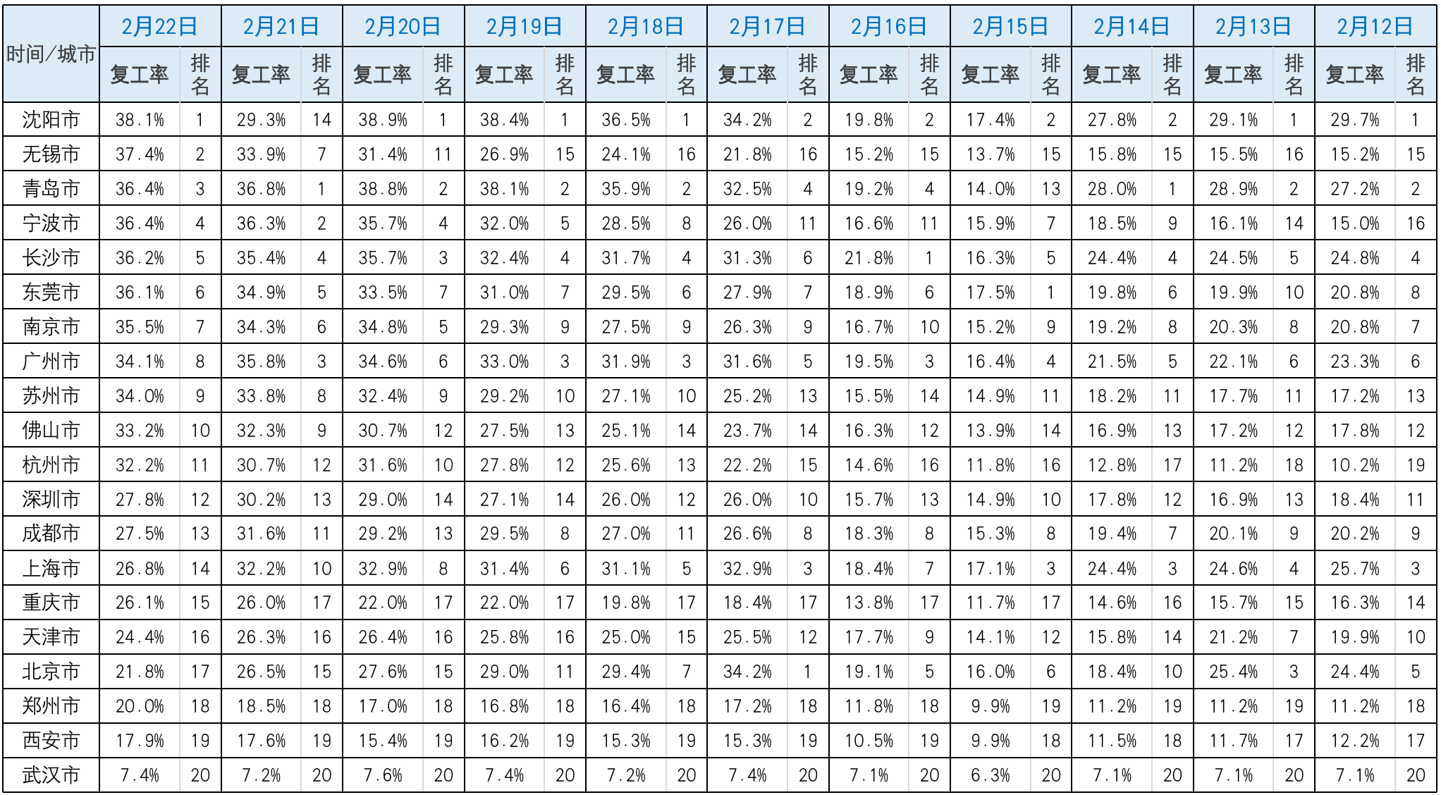 三、不同行業(yè)、不同地區(qū)復(fù)工指數(shù)的具體數(shù)據(jù)和分析